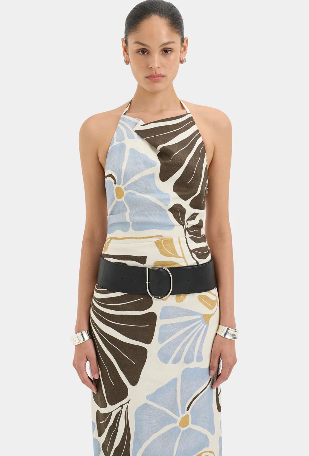 COMING SOON - The Julietta Balconette Midi Dress is crafted from our signature midweight linen in a SIR. custom floral print. It features a supportive underwire bodice, wide shoulder straps,...