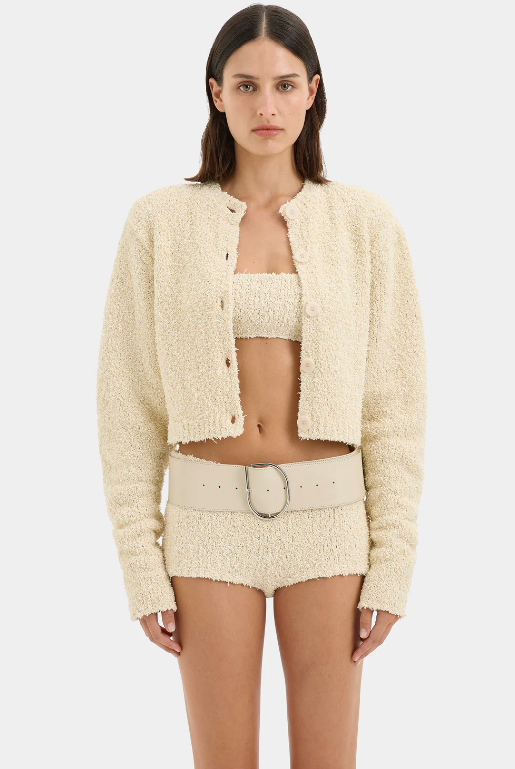 COMING SOON - The Rocco Wide Leather Belt in Cream is crafted from smooth responsibly sourced leather, featuring a wide adjustable fit and an abstract silver buckle custom to SIR....