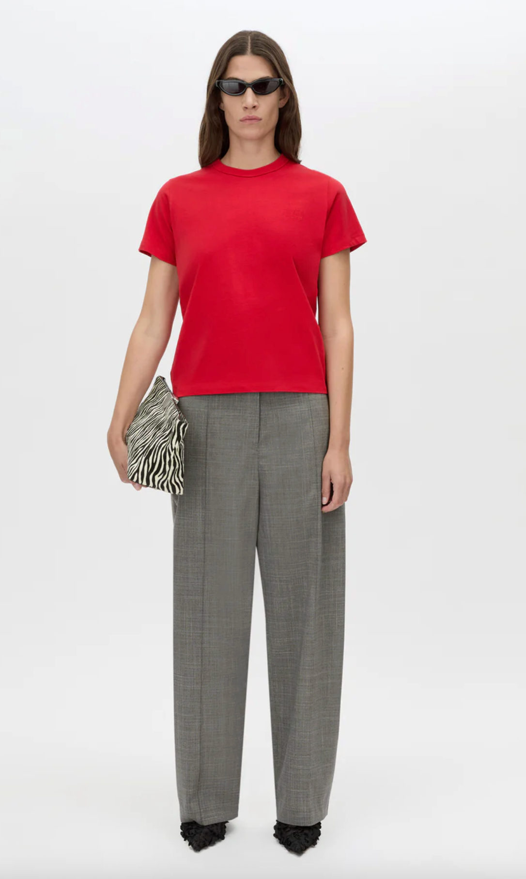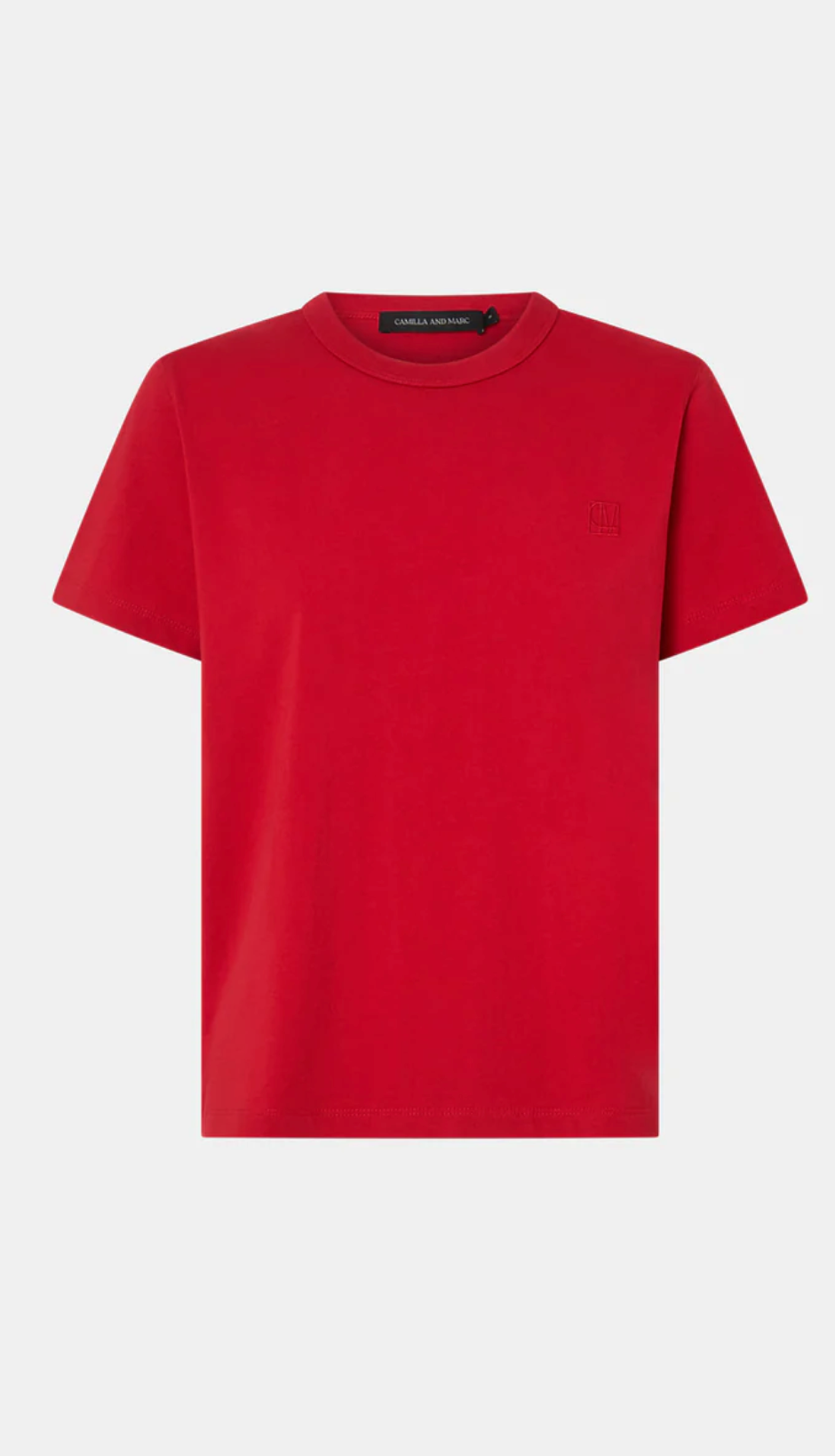 CAMILLA AND MARC Rosa red neat fit t-shirt. Monogram front, ribbed neck bind, fitted silhouette. Atelier Notes: 100% cotton. - Slim Fit - Model is 180cm tall and wearing a size...
