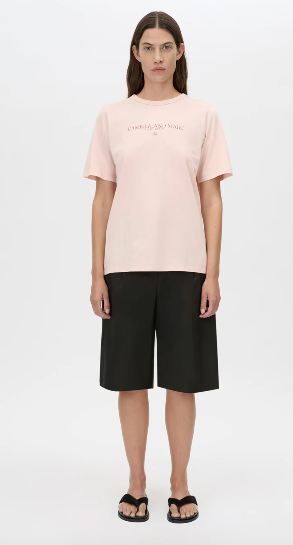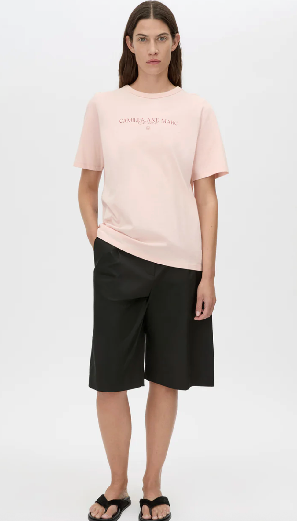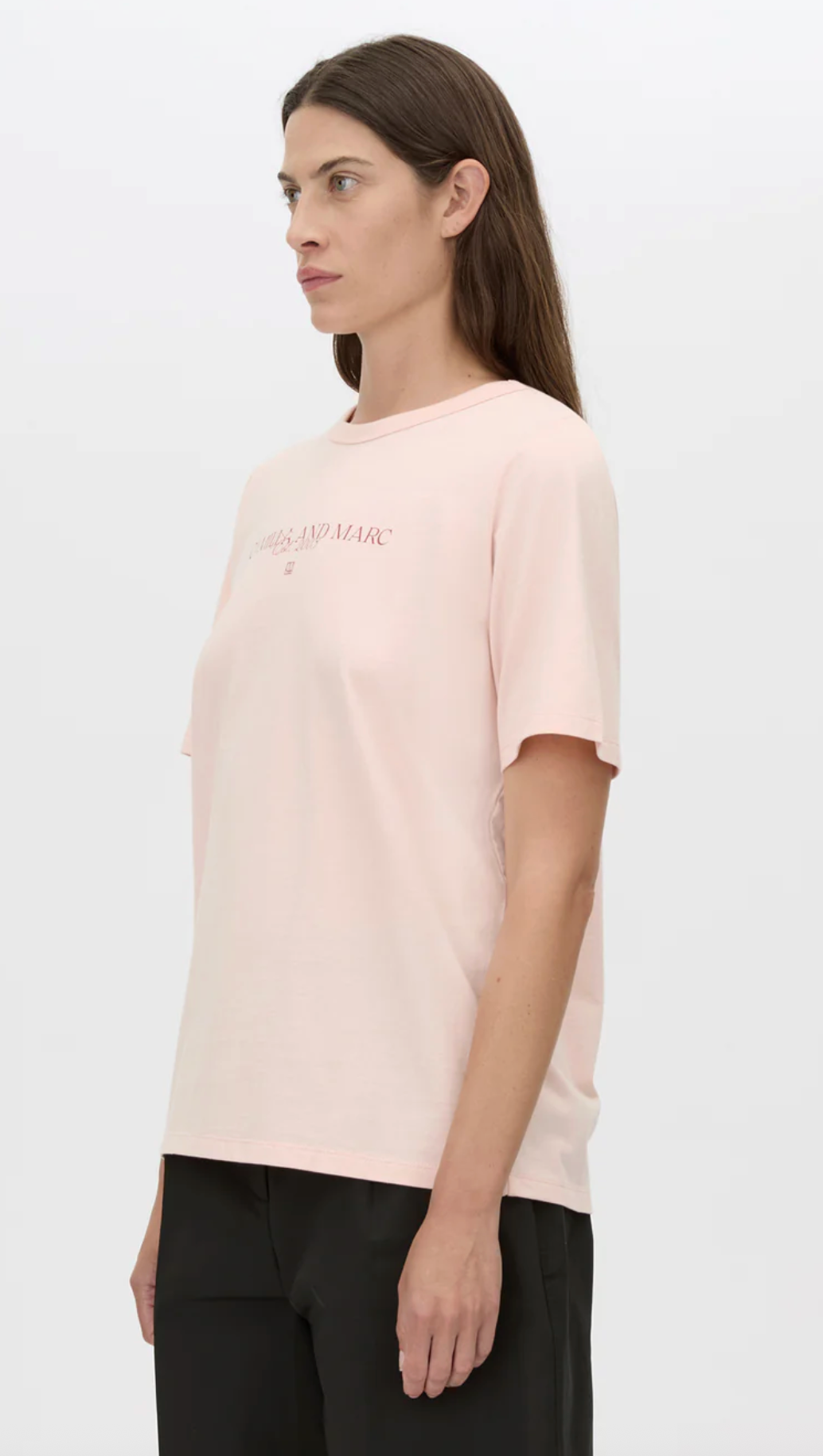 CAMILLA AND MARC Ghiberti pink relaxed short-sleeve t-shirt with ribbed crew neckline and light plastisol logo print. Twin needle hem. Atelier Notes: 100% cotton. - True to size- Model is...