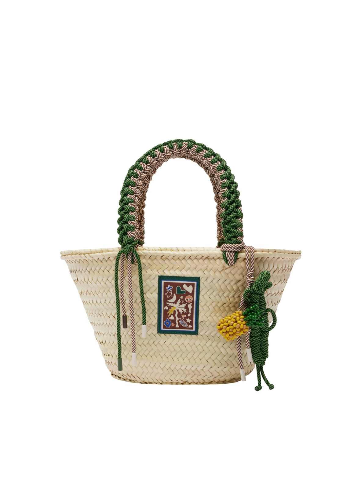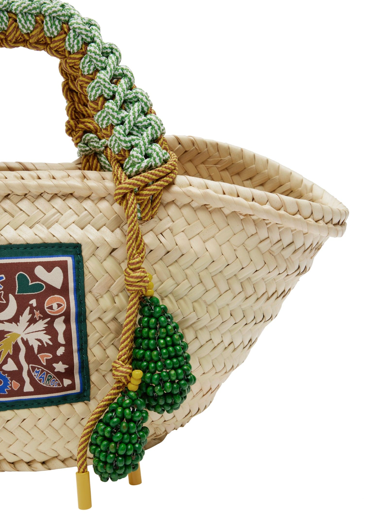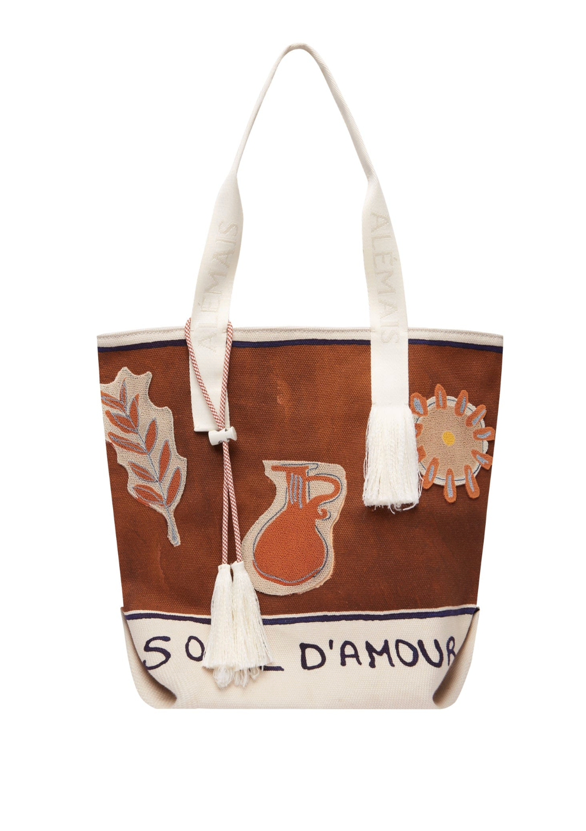 Artwork in collaboration with Laurence Leenaert Printed cotton tote bag with textured motifs Ivory branded woven jacquard webbing handles with a tassel end Tassel charm with ivory powder coated hardware Internal...