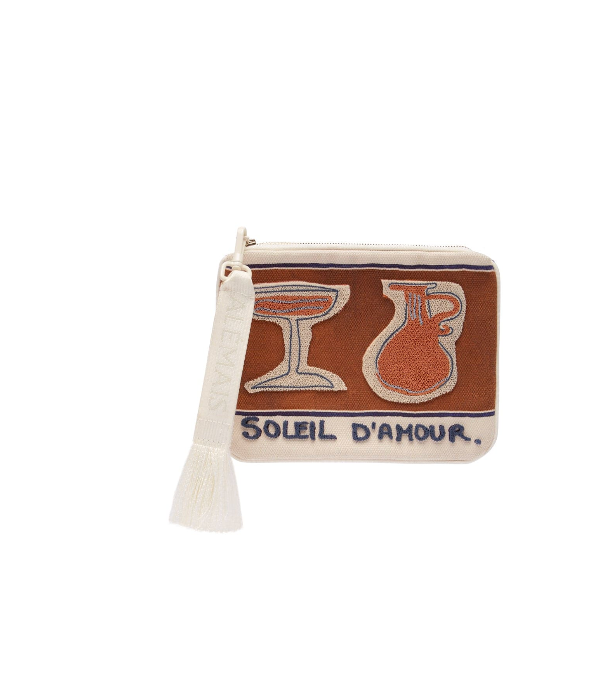 Artwork in collaboration with Laurence Leenaert Ivory branded woven jacquard webbing wristlet with tassel end which can be removed Gold zip opening Refer to flat lay product shots for true product colour representation...