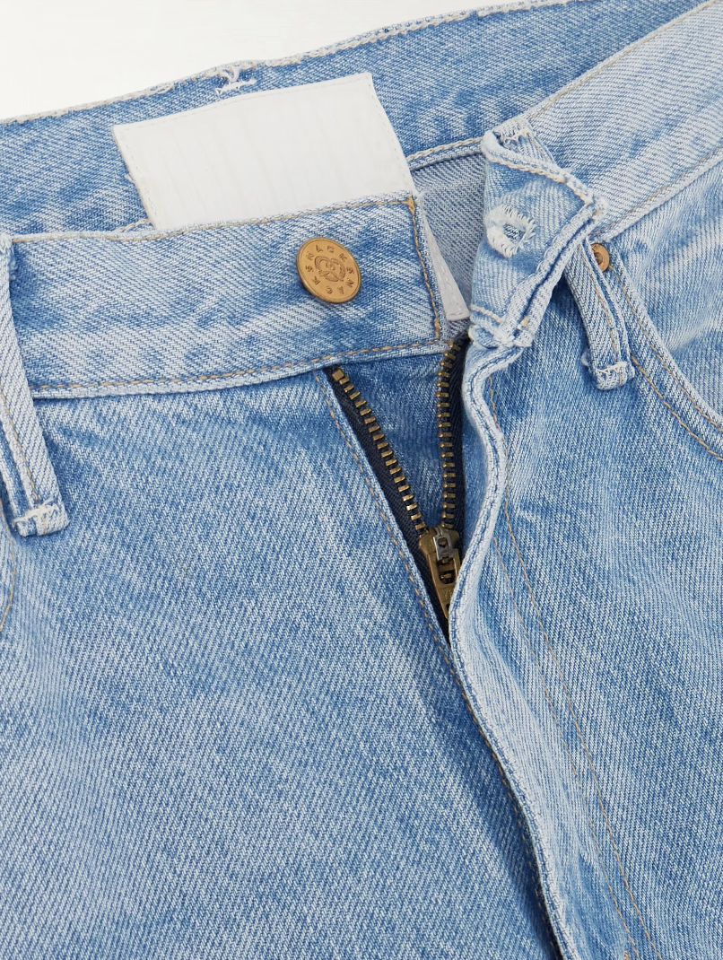 Back in action. Mid-rise jeans with a wide straight leg, zip fly and an ankle-length inseam with a frayed hem. Made from semi-rigid denim, Comeback Kid is light blue with...