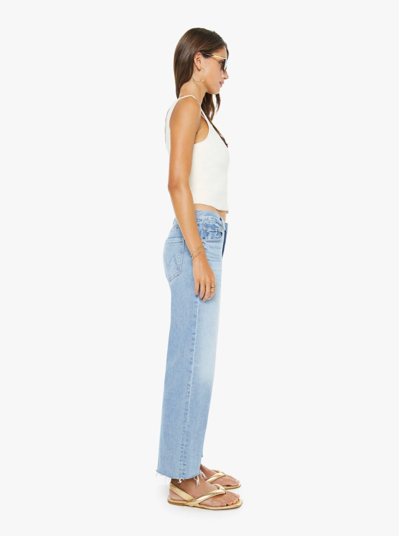 MOTHER's 'The Lemon Twist' jeans are part of the 'SNACKS!' collection, which features loose, dramatic proportions. This high-rise pair has wide legs that are detailed with twisting asymmetric seams. The...
