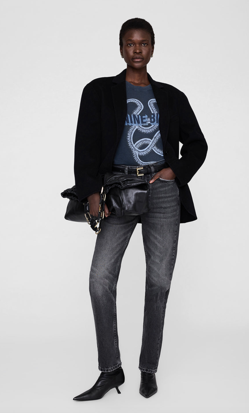 A vintage-inspired basic made from a lightweight 100% cotton jersey fabrication in washed black. - Cotton jersey- Ribbed crew neck- Boxy, oversized fit- ANINE BING blue snake screen print graphic at...