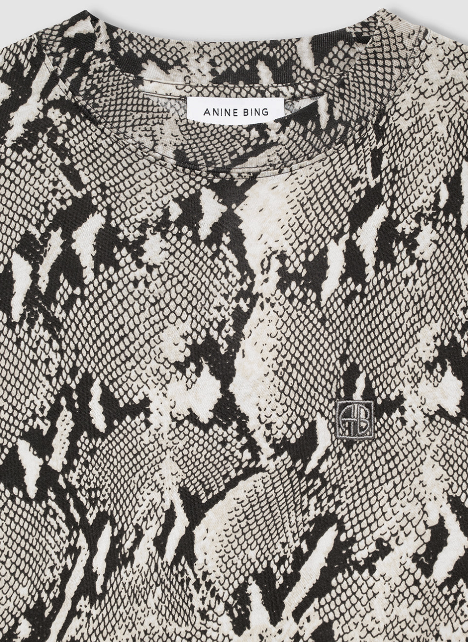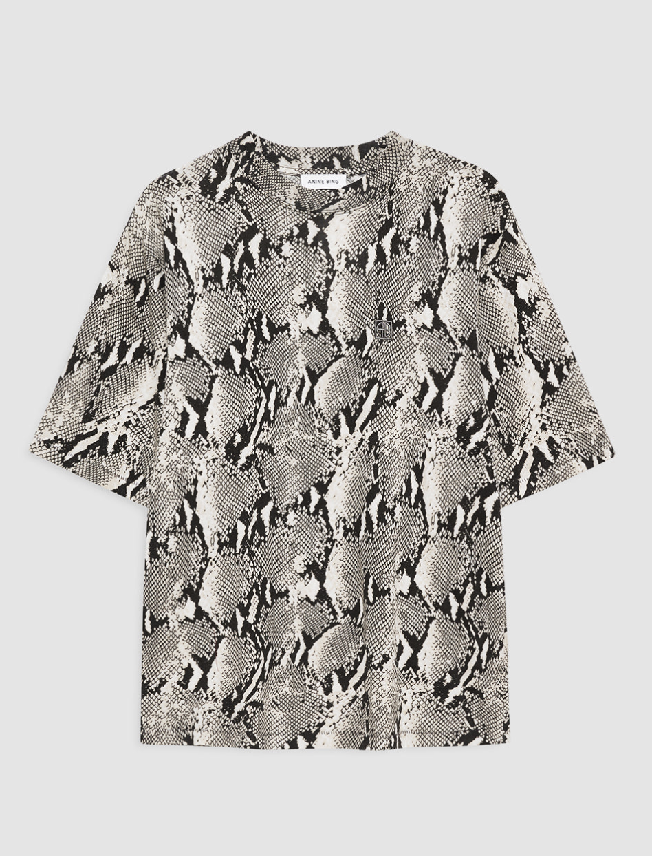 An oversized, boxy T-shirt constructed from lightweight 100% cotton jersey in an all-over washed python print. - Cotton jersey- Oversized fit- Grey ANINE BING framed monogram embroidered at the wearer's left...