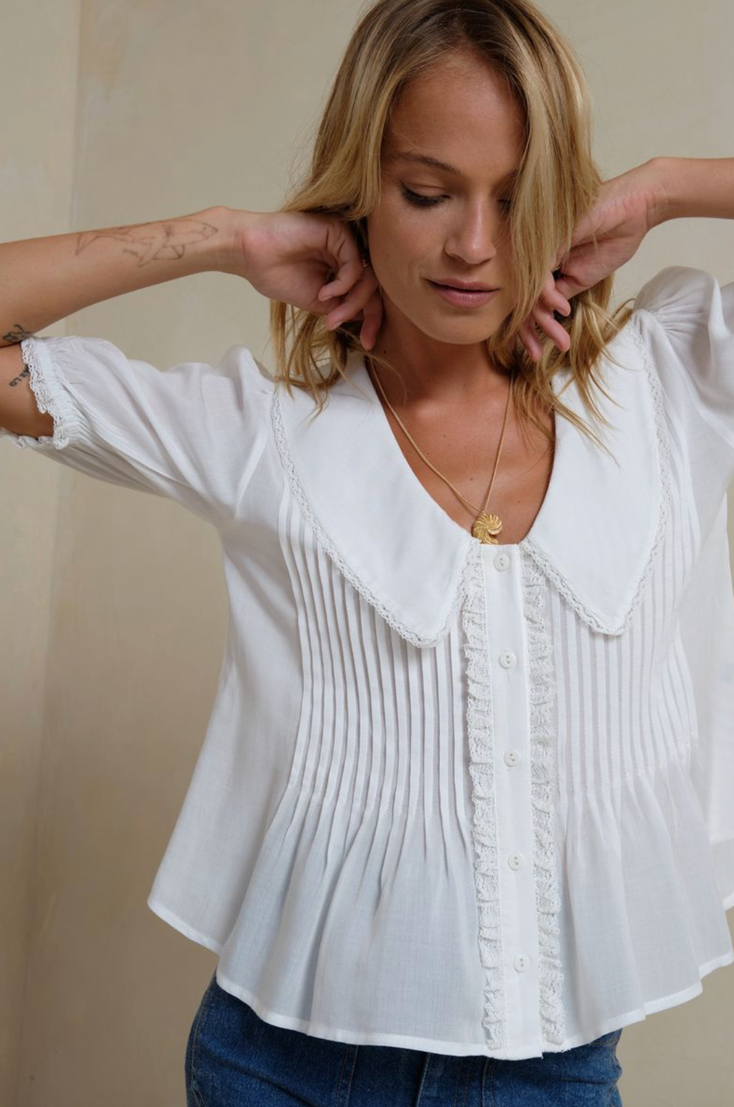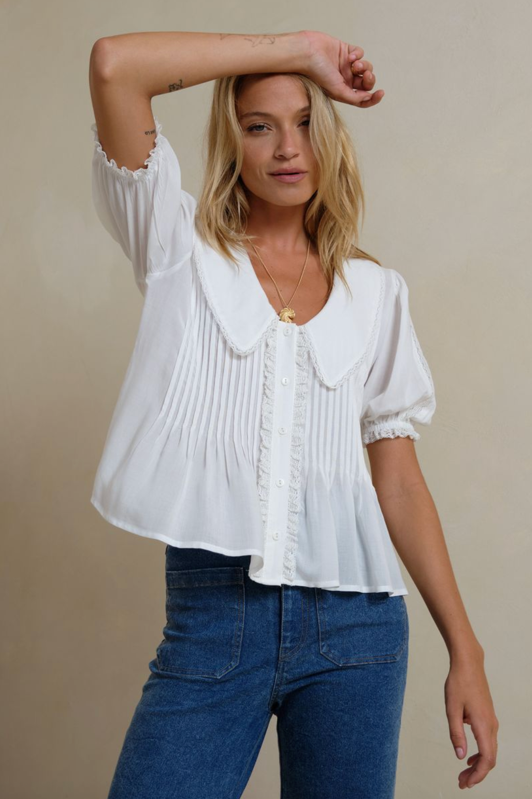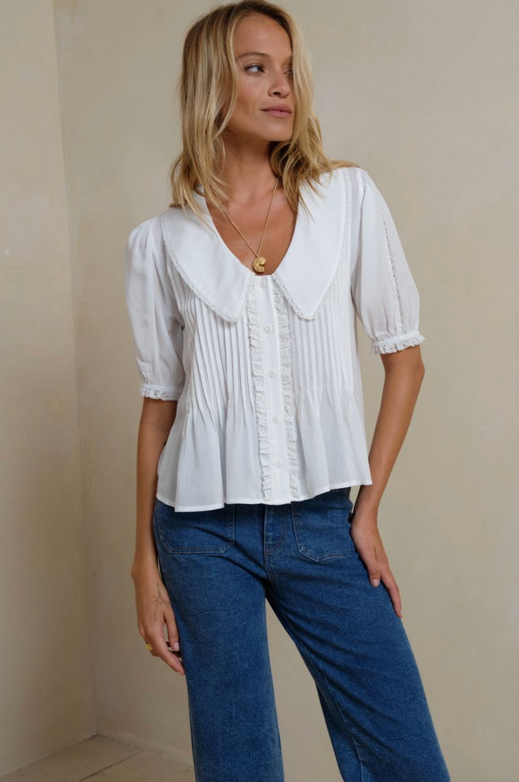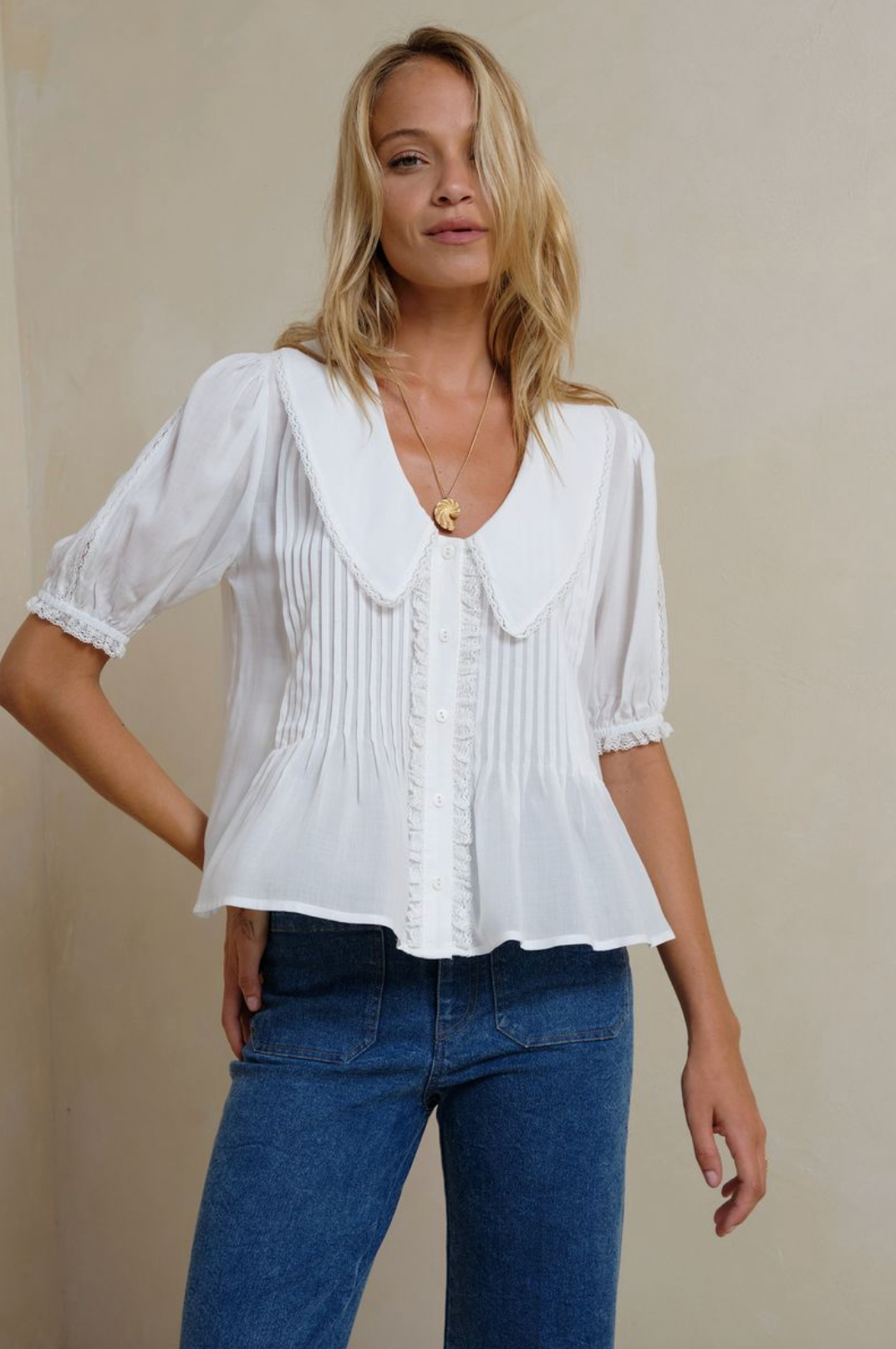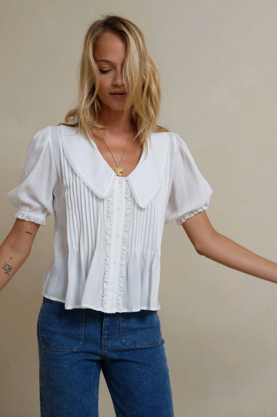 Starting lineup. A crewneck tee with extra-short sleeves, inset details at the shoulders and a loose, boxy fit. Made from 100% cotton in off-white, the tee features white stars along...
