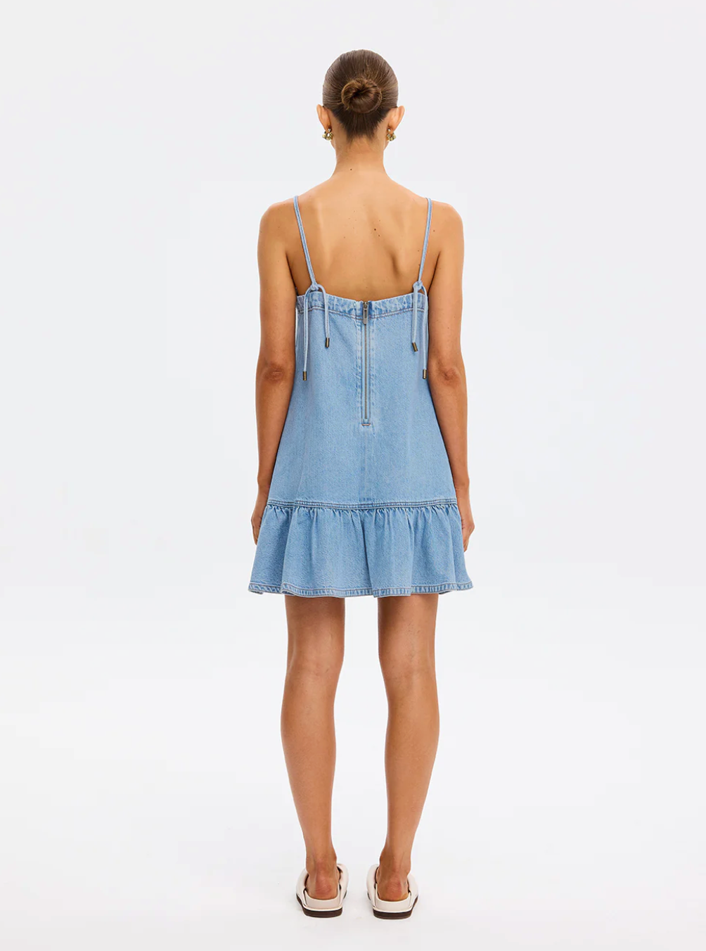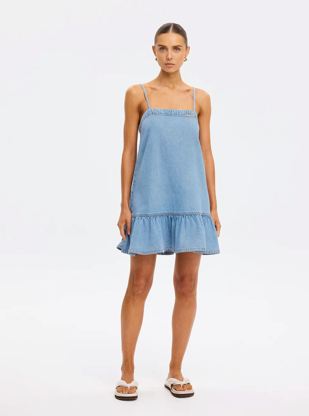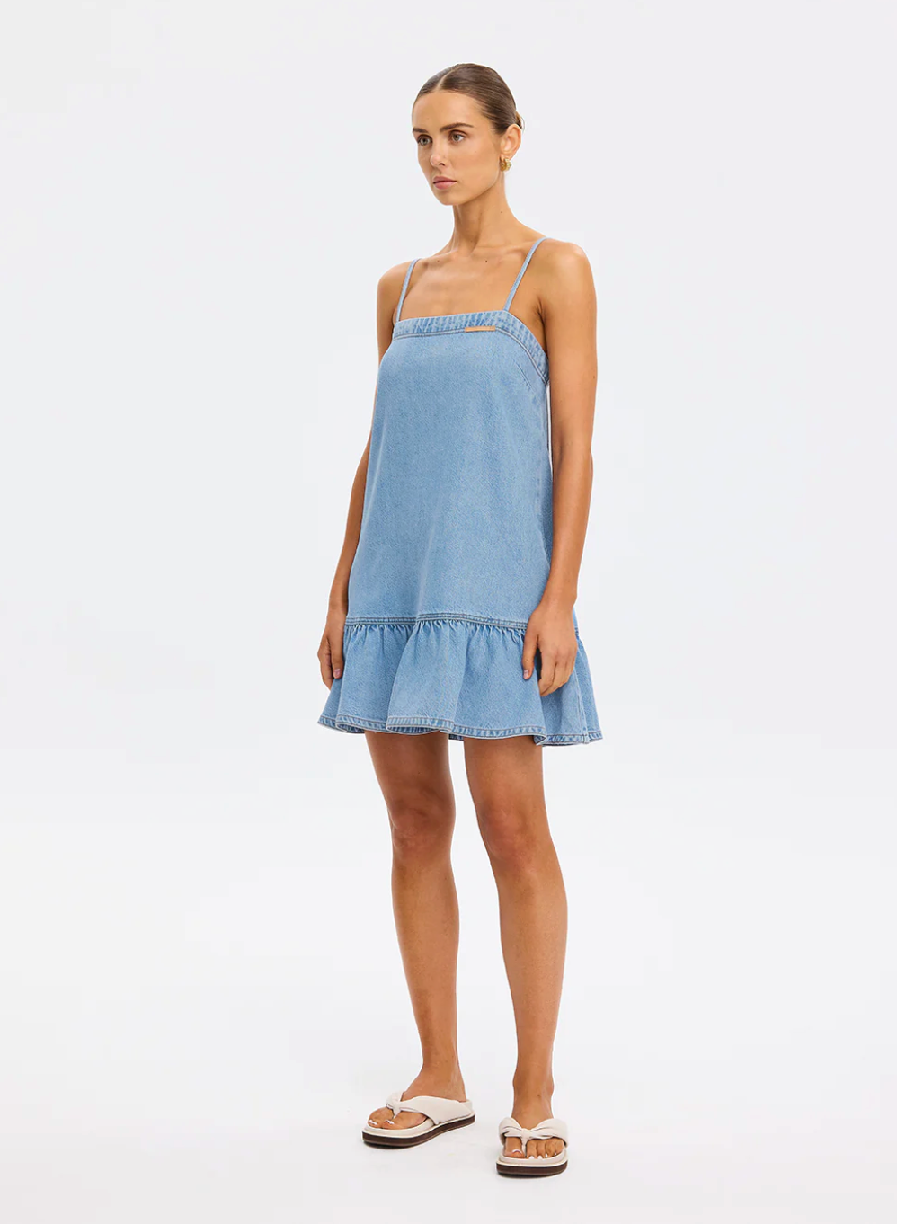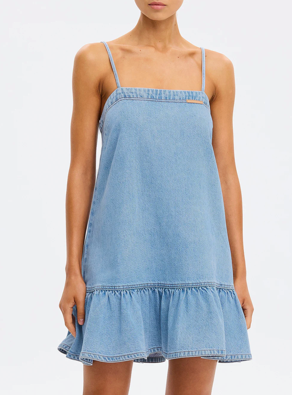 The Emilie Denim Dress features thin shoulder straps and a dropped waist that falls softly to a gathered frill hem. Light and effortless, it brings a refined approach to warm-weather...