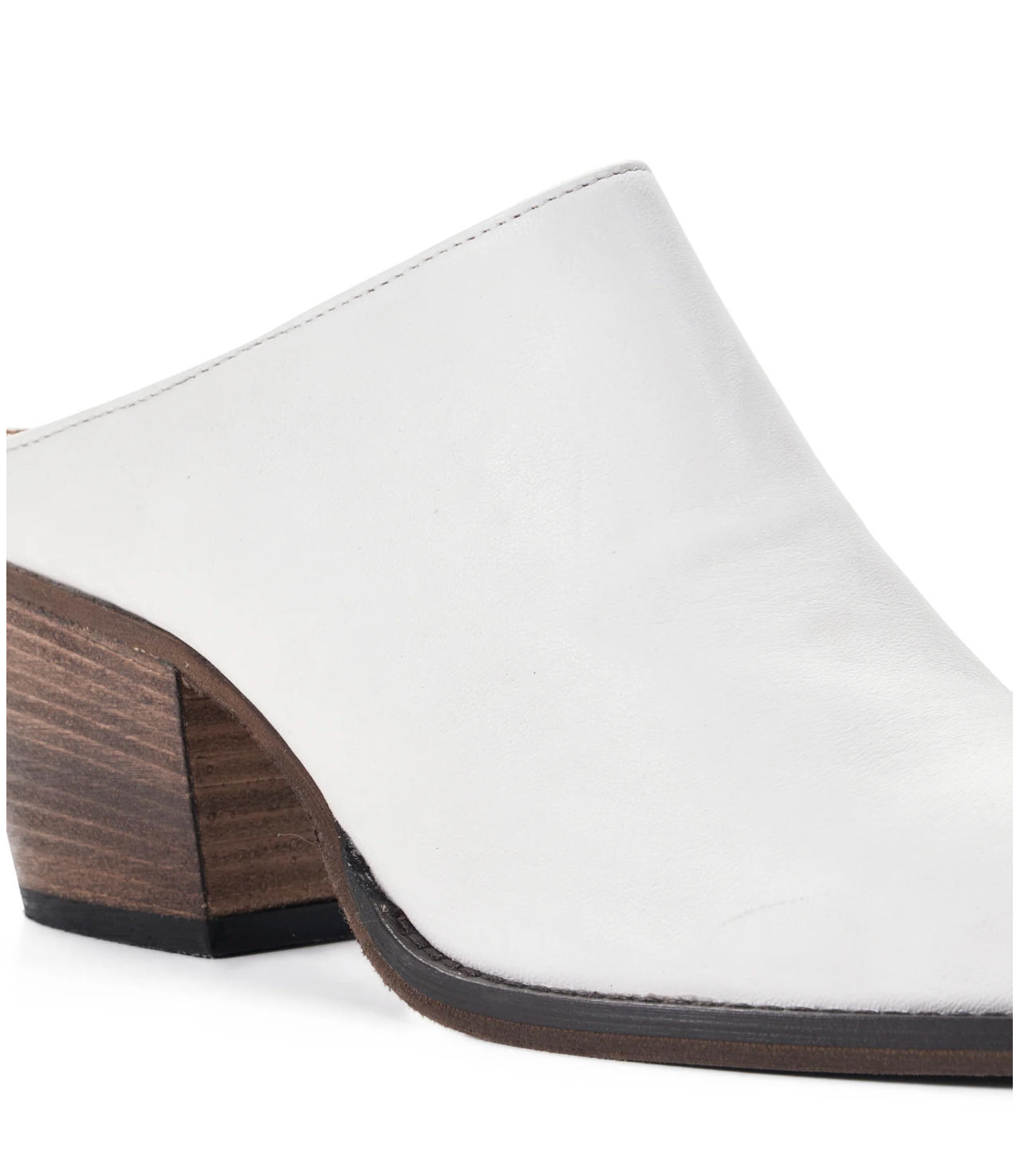 Leather upper, leather sole, leather insole. A refined women's leather mule with a sleek pointed toe and stacked mid heel The clean, minimal leather upper and backless silhouette create a...