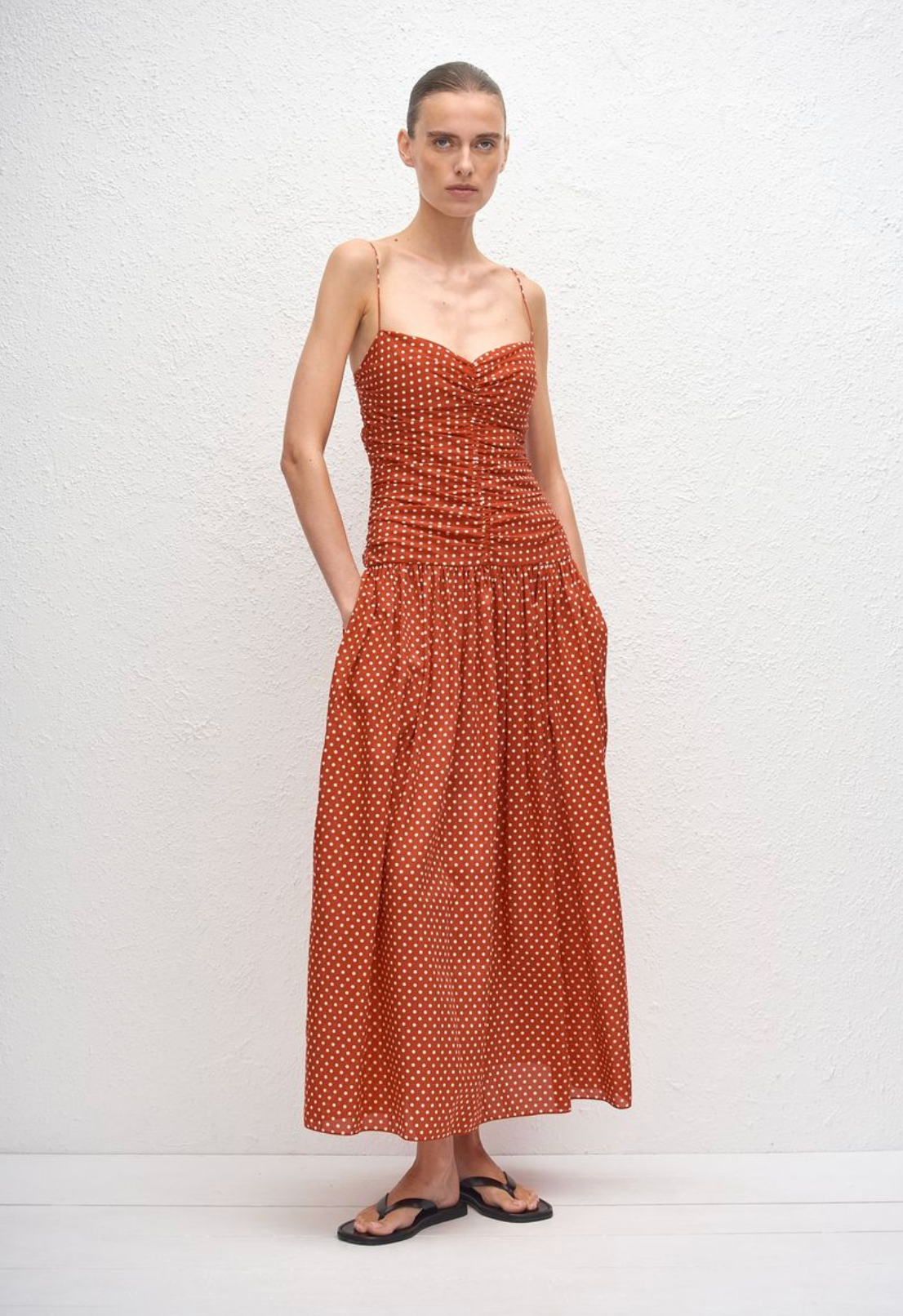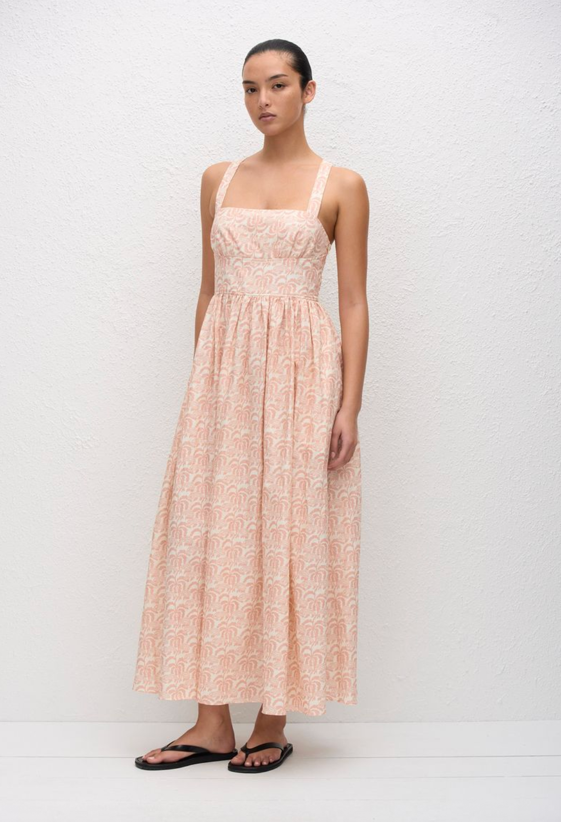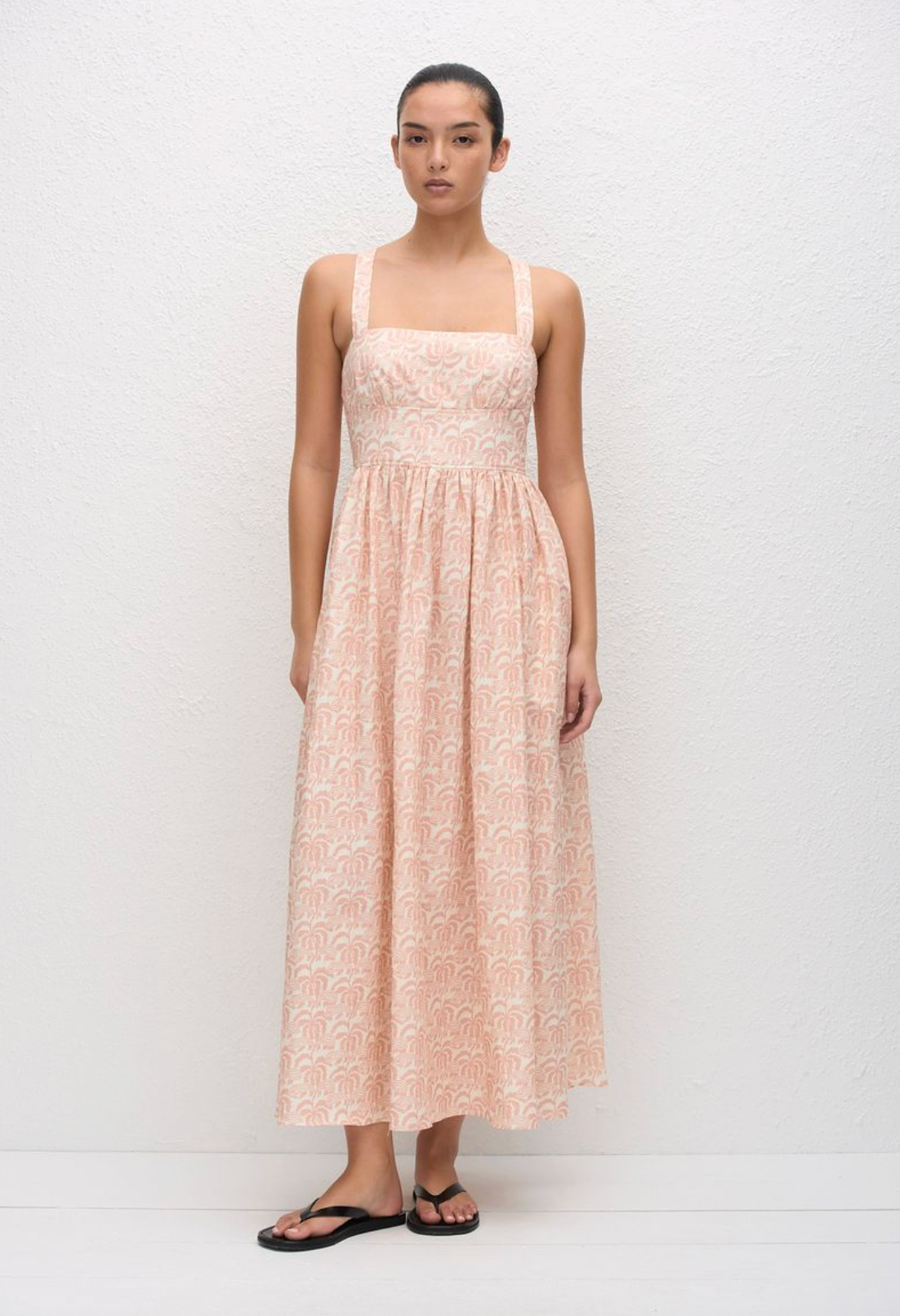This midi dress is a playful twist on a classic silhouette, featuring a sweetheart neckline, fine straps and a gathered bodice which extends low on the waist into a full...