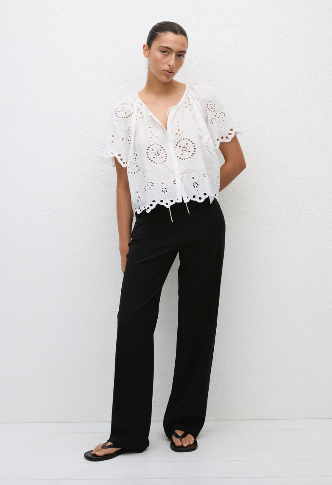 This elegant everyday blouse in our delicate floral broderie features a scalloped hem finish on the body and sleeves. This piece is unlined and has an element of sheerness through...