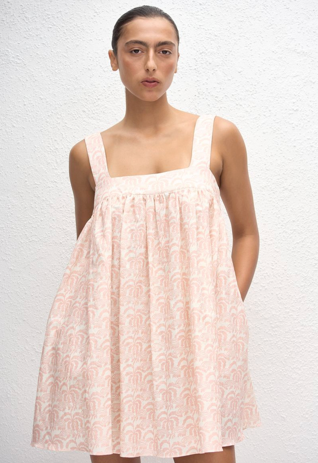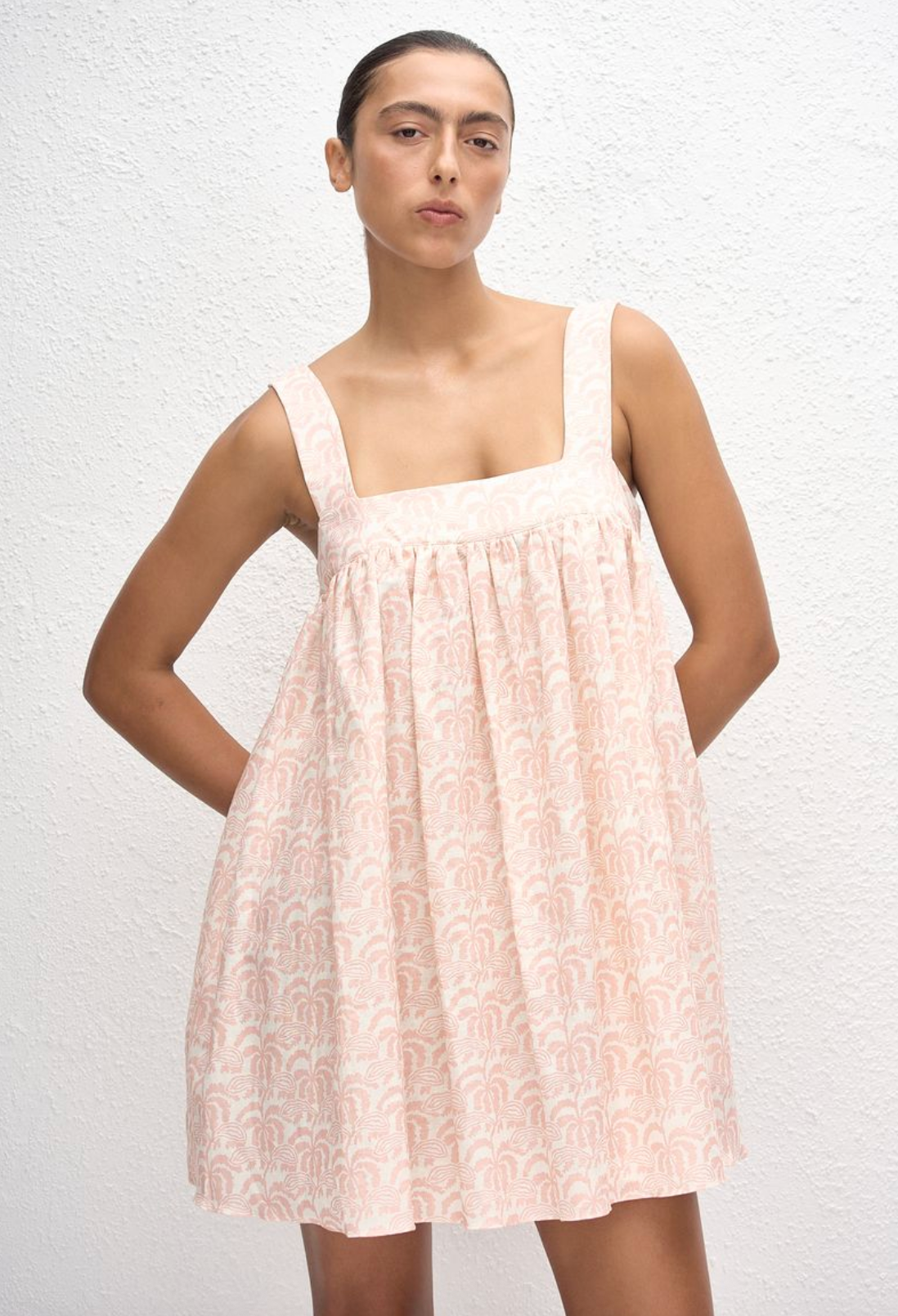 Introducing our Babydoll Linen Mini Dress. This new popover silhouette is crafted in a linen cotton fabrication. Featuring a babydoll neckline with fixed gathering just over the bust, this style...