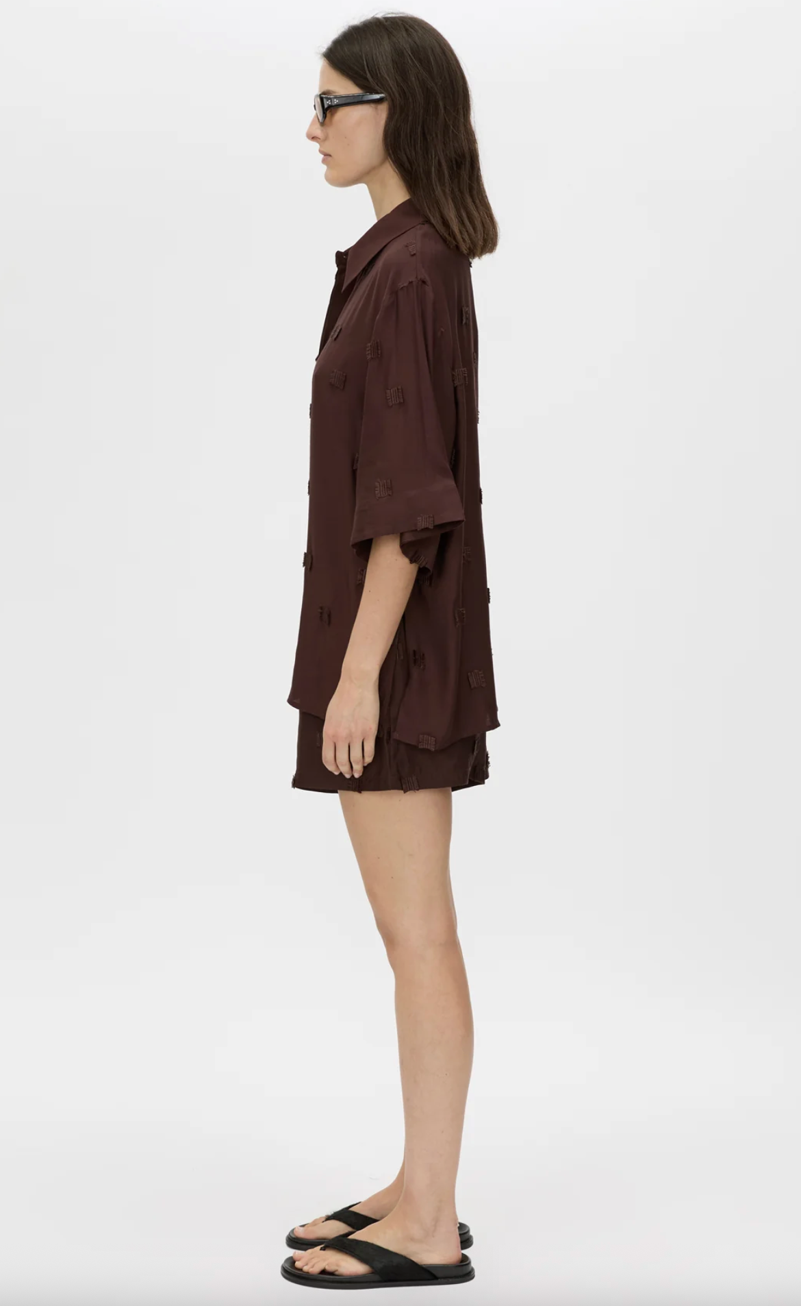 CAMILLA AND MARC Ottilie 2.0 Embroidered Short in Chocolate Brown. The Ottilie 2.0 Short is crafted from a refined, lightweight textile in a relaxed mid-rise silhouette. This short features all...