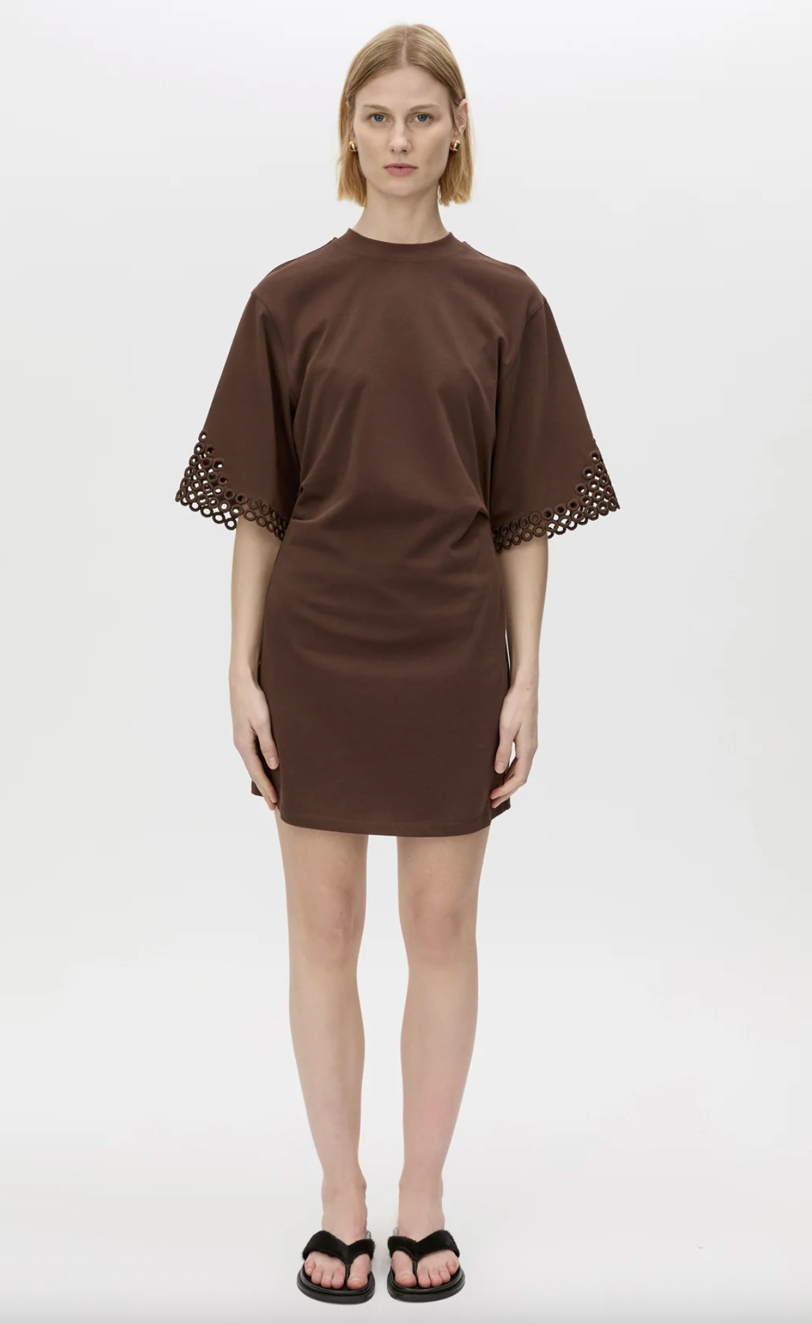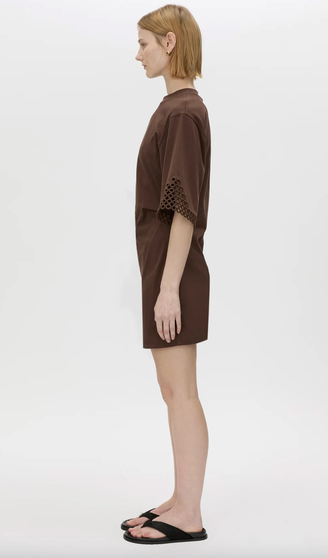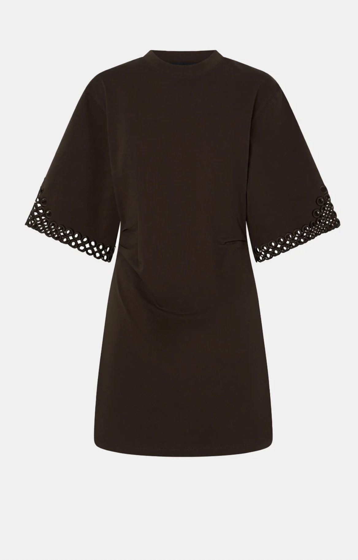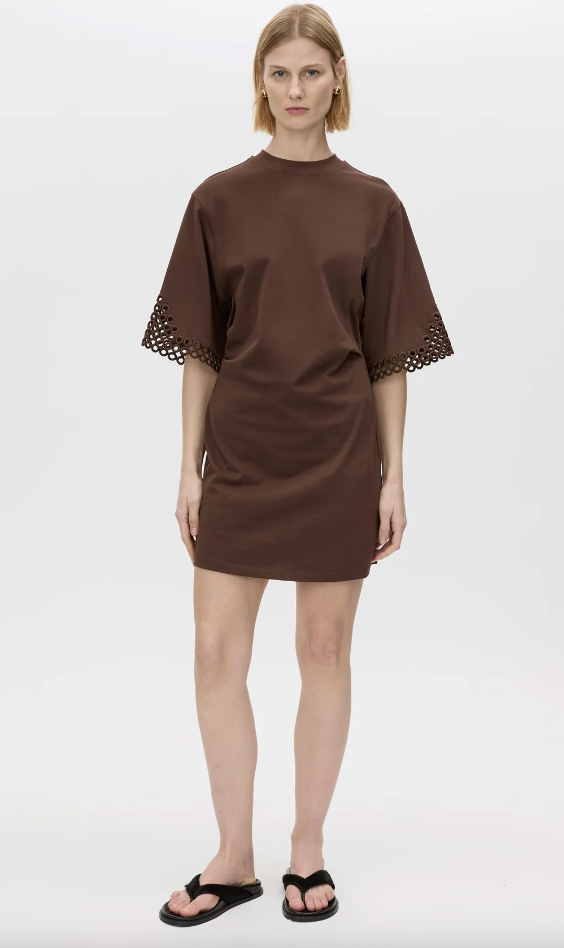CAMILLA AND MARC Lolani Embroidered Mini Tee Dress in Chocolate Brown. The Lolani Mini Tee Dress is crafted from cotton in a relaxed silhouette. This dress features an embroidered circle...
