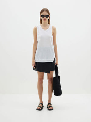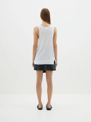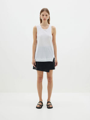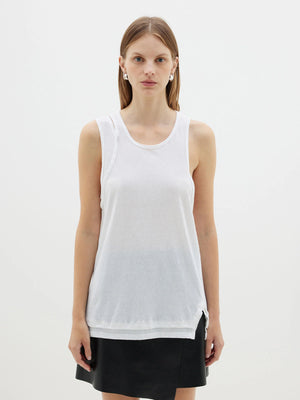 our slouch fit tank in a single layer superfine organic cotton jersey. features a fine bind and layered scoop effect at the neck.