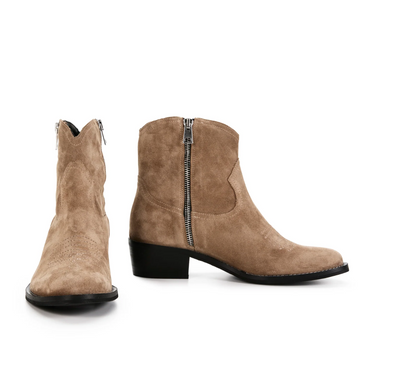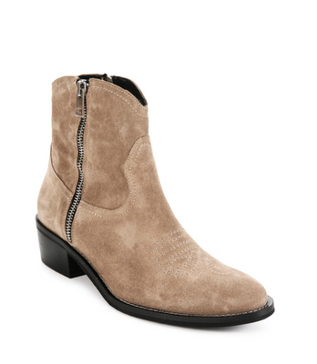 A slim silhouette and subtle western styling, the Love Zip Boot is made from Italian Nubuck leather for a look that improves with wear. Exposed back zipper with suede leather...