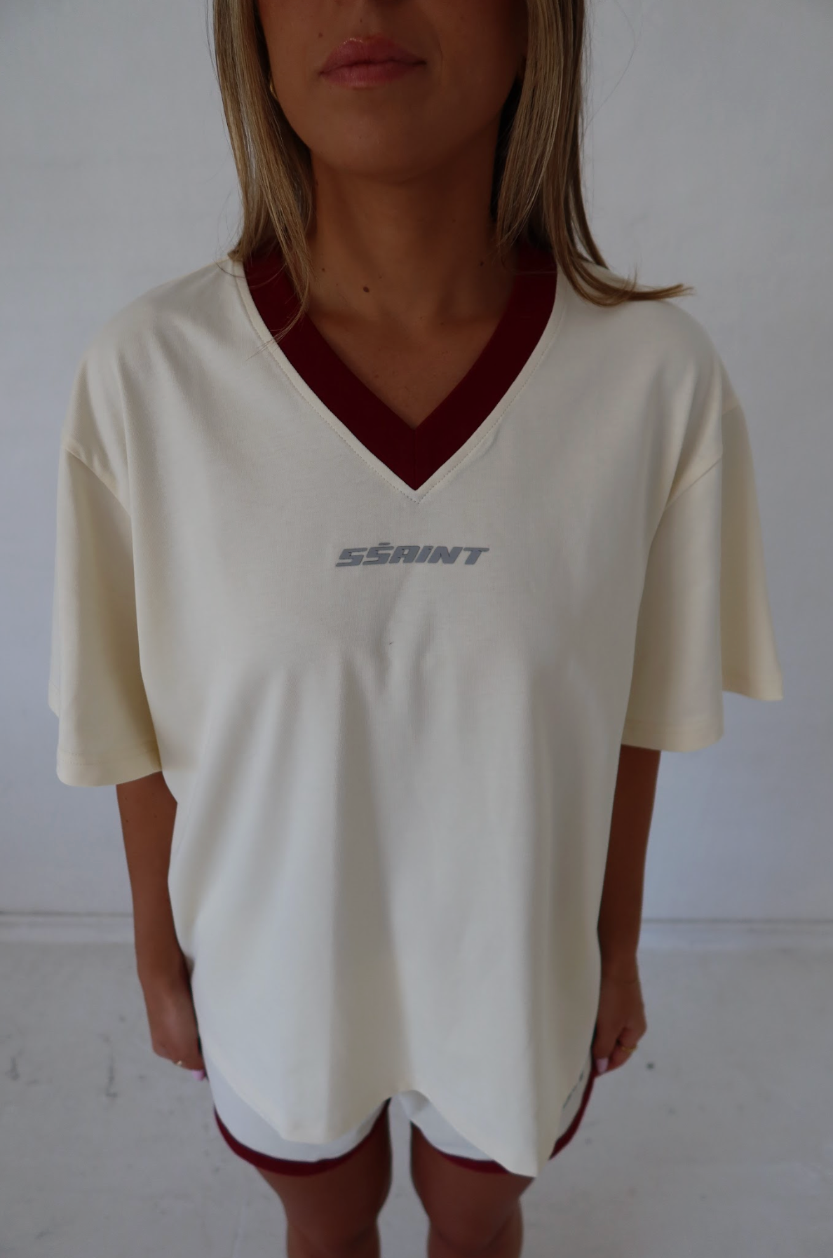 Ssaint Reflective V Neck Tee - Butter - PRESALE