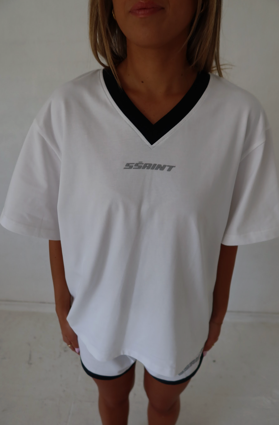 Ssaint Reflective V Neck Tee - White - PRESALE
