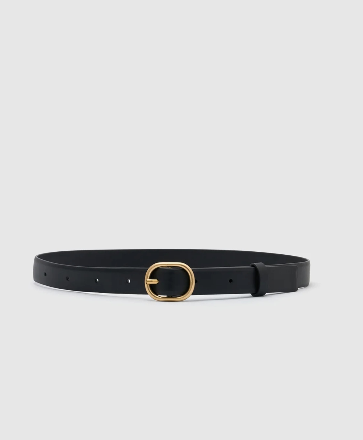 CAMILLA AND MARC Rae matte leather belt with gold oval buckle. 3cm width.XS/S length - 103cmS/M length - 110cmM/L length - 117cm - Adjustable Fit- Model is 180cm tall and...