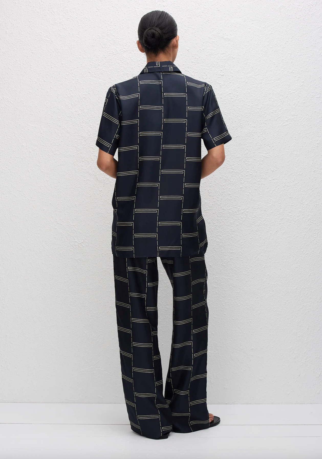 The perfect combination of comfort and elegance, this relaxed, straight-leg trouser features a streamlined elastic waist and side pockets. Expertly crafted from a silk twill fabrication, style with the matching...