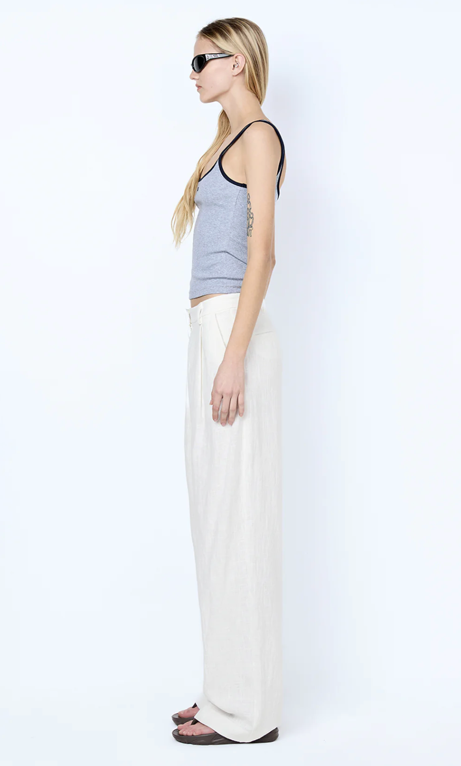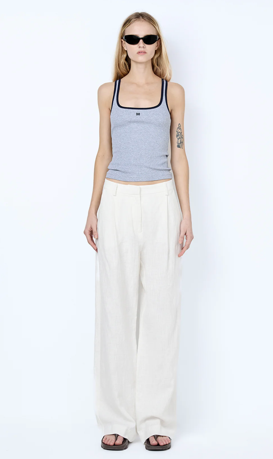 Lana Square Neck Tank in Grey/Ink. This versatile rib knit tank top offers a flattering fitted silhouette with a timeless square neckline, perfect for effortless everyday styling. Cut from heavy rib...