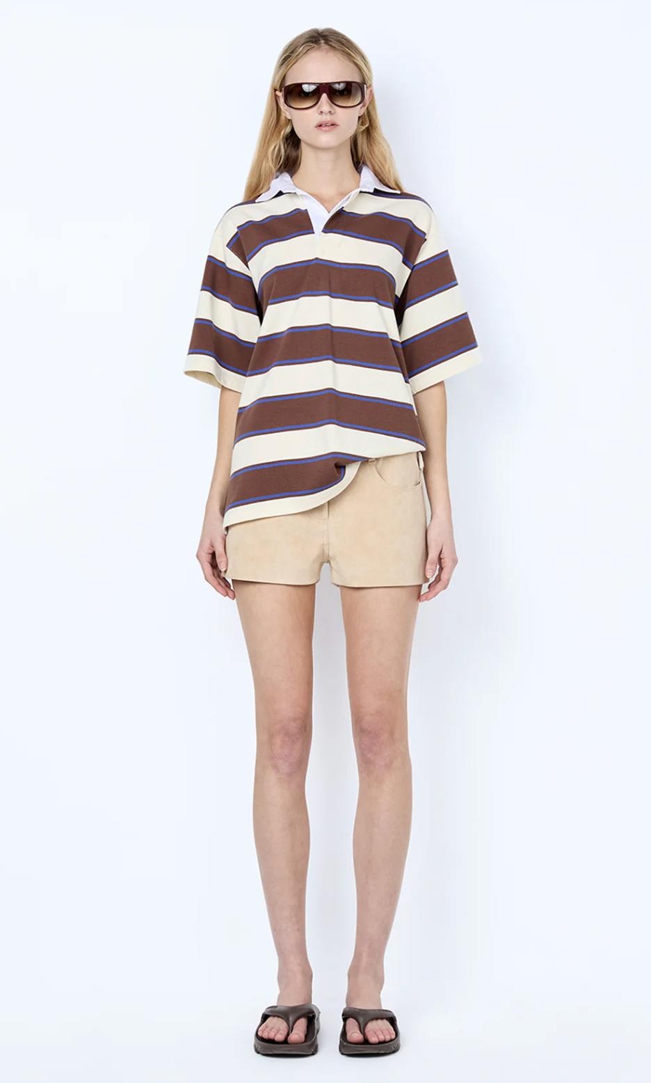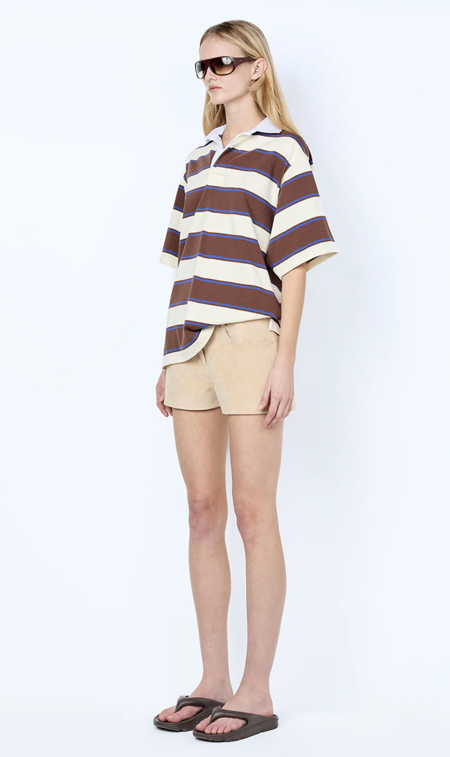 Mylo Jersey Tee in Ivory/Chocolate Stripe. This comfortable jersey tee in a classic stripe features a contrast collar and a relaxed boxy fit, perfect for effortless everyday styling.Short sleeve design, cut...