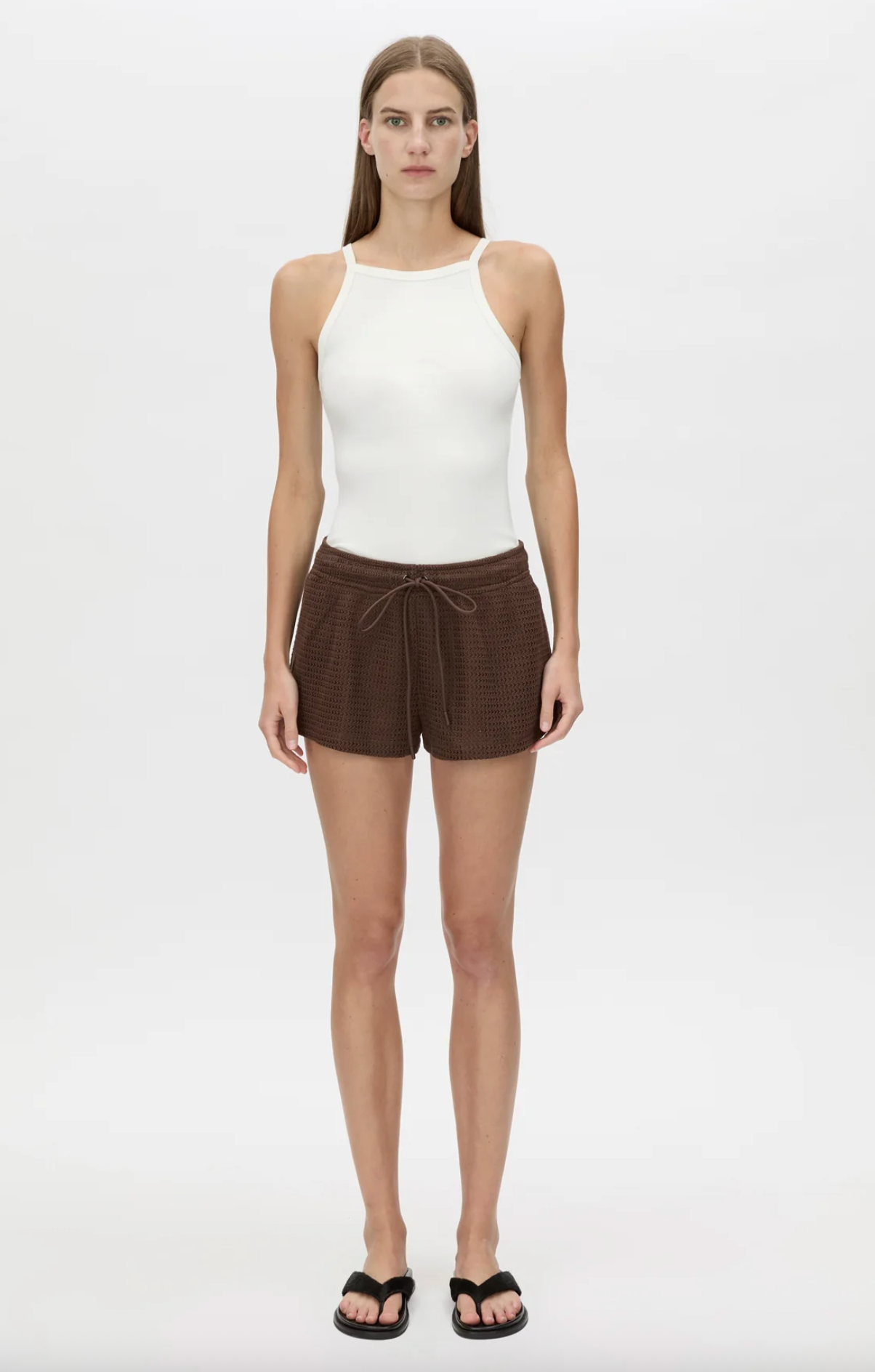 CAMILLA AND MARC Turrell brown textured cotton blend pull-on mini short with elasticated waistband and drawcord. Inseam pockets. - True to size- Model is 184cm tall and wearing a size...