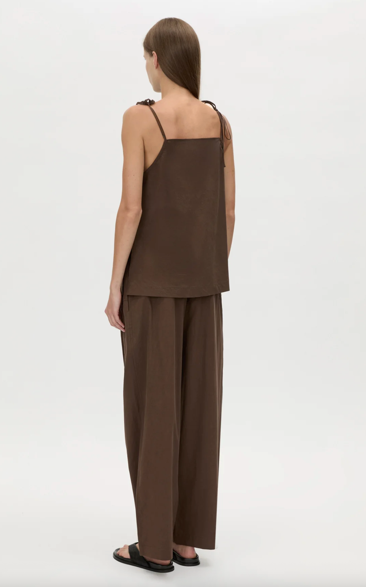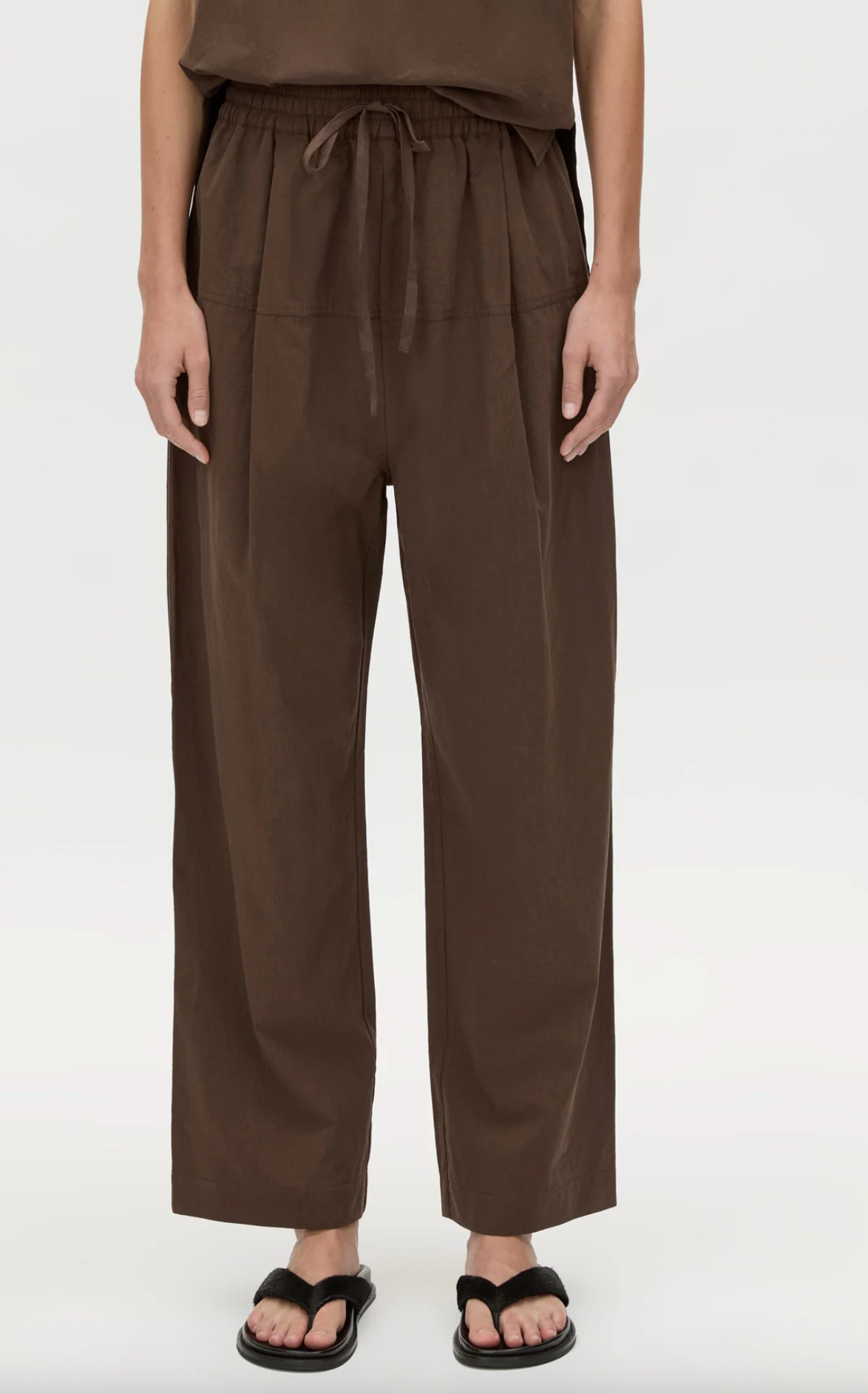 CAMILLA AND MARC Serra brown mid-waist cotton fisherman pant. Elastic waistband, dropped crotch, inseam pockets. Atelier Notes: Crafted from a cotton and tencel blend. - True to size- Model is...