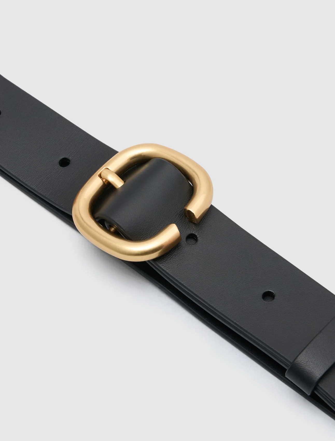CAMILLA AND MARC Brody leather black belt with large rounded gap gold buckle. Available in three lengths. - Leather belt with large gold buckle- XS/S length - 103cm- S/M length...