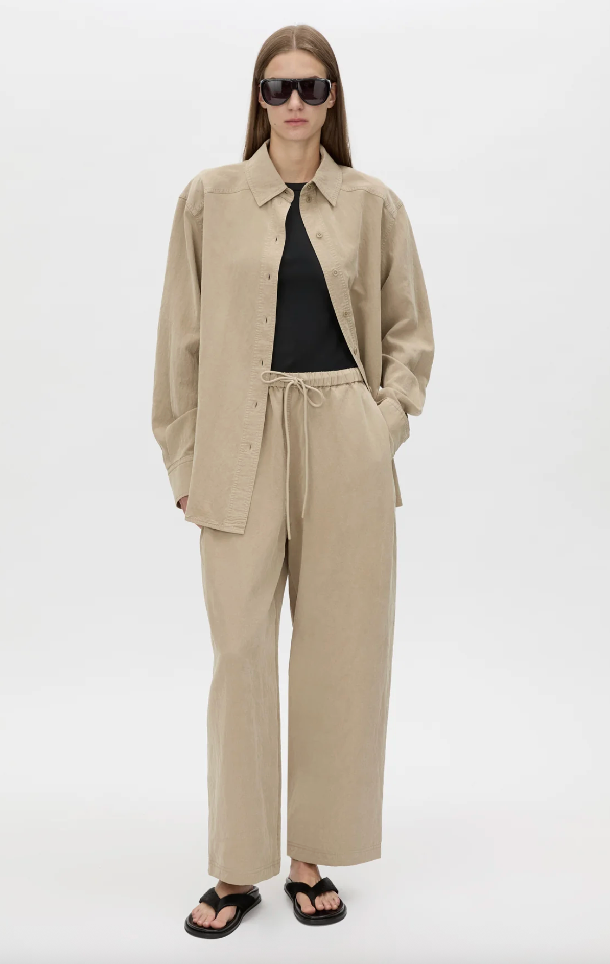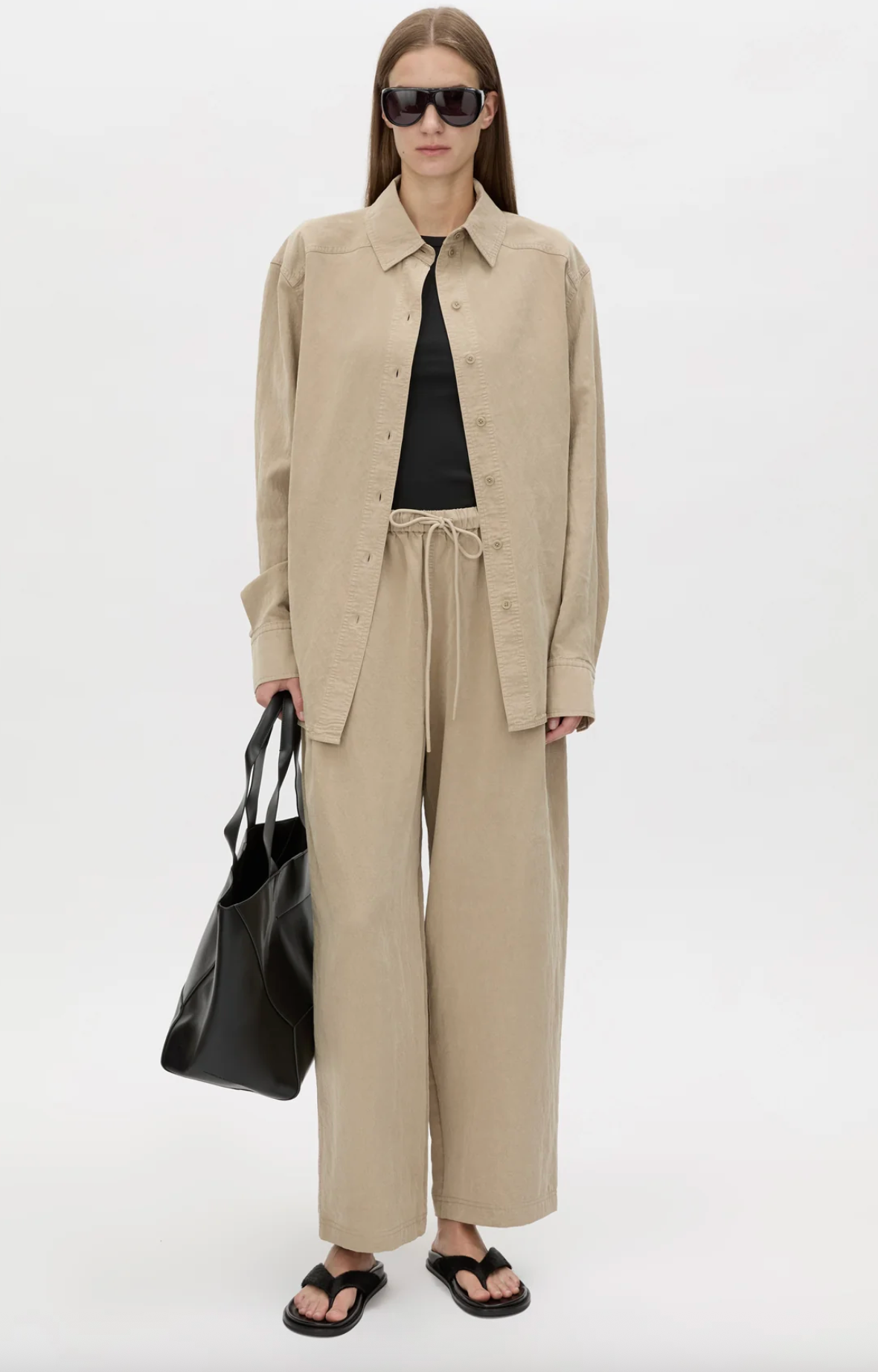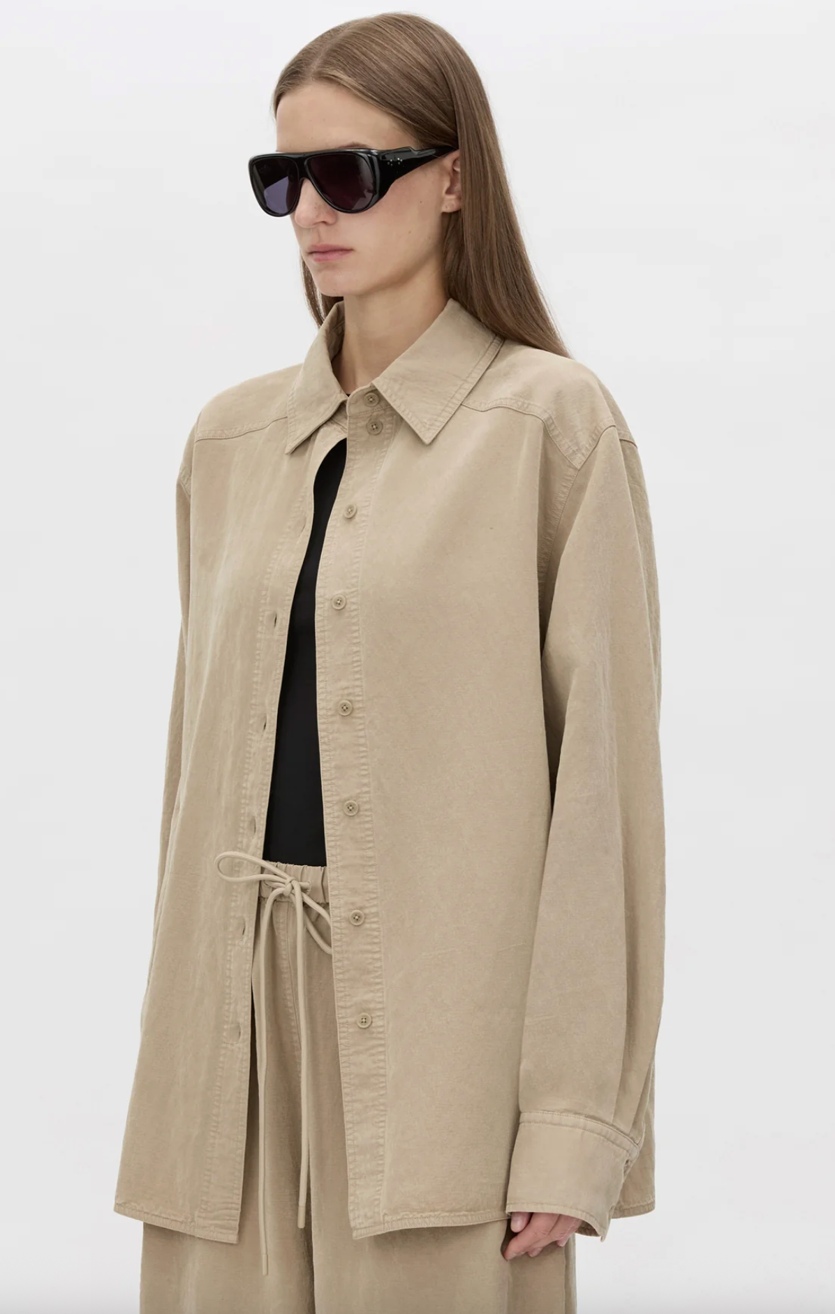 CAMILLA AND MARC Adakite collared brown oversized shirt with corozo buttons. Long sleeves, side splits, classic collar. Atelier Notes: Woven from a blend of cotton and tencel. - Oversized fit-...