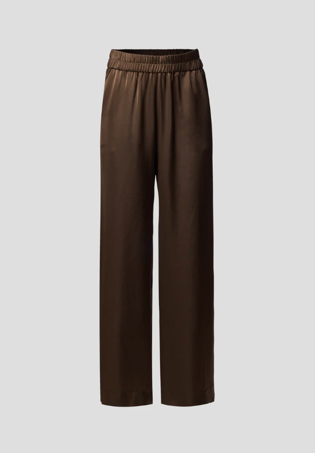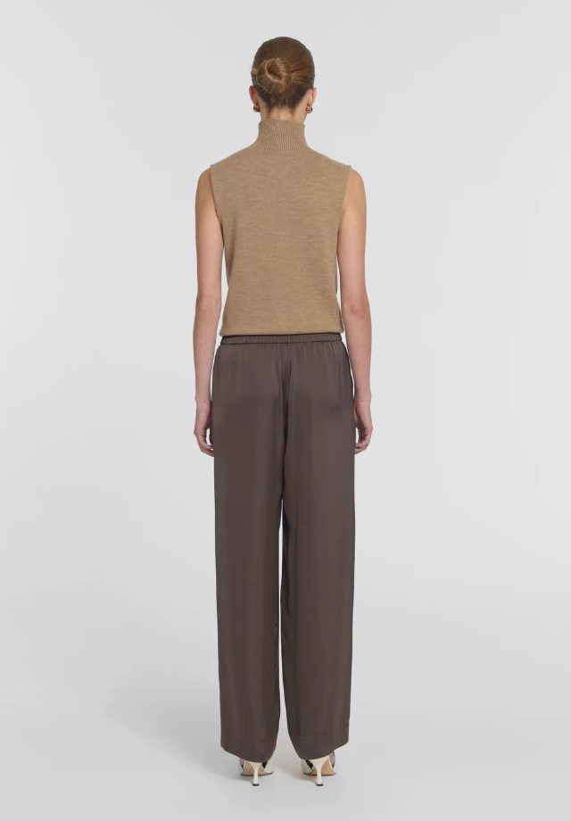 The Pilot Pant returns in our signature cupro blend in chocolate. Loosely tailored with an elasticised waist and wide-leg silhouette, it creates an elongated profile. Complete the look with the...